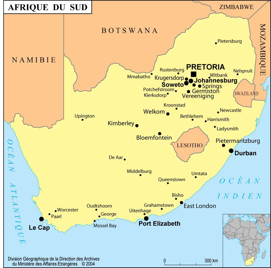 Descubrir un mapa de Sudáfrica. La República de Sudáfrica se caracteriza tanto por una economía avanzada como por una cultura del Tercer Mundo.