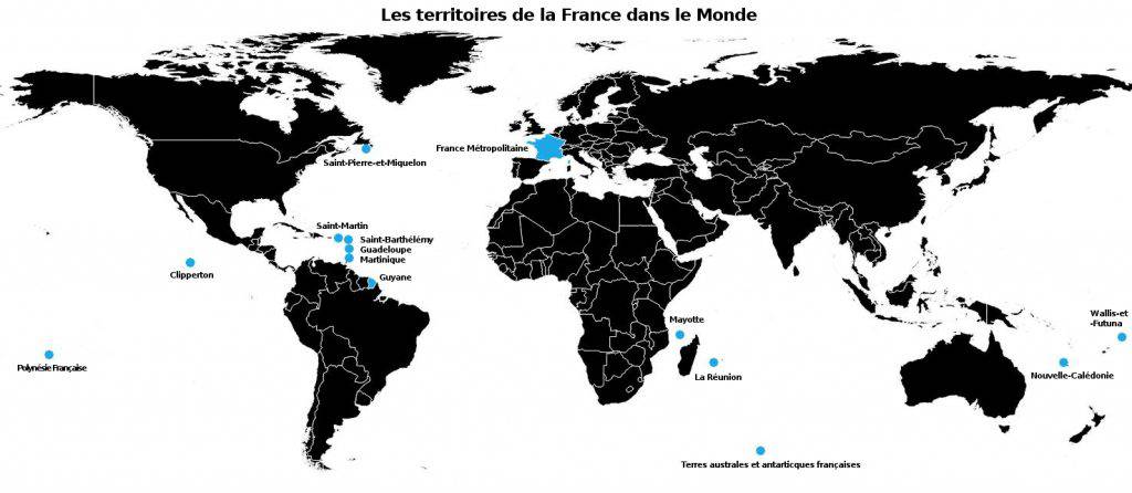 The French Republic also includes 5 overseas departments: French Guiana, Guadeloupe, Martinique, Mayotte and Réunion, as well as four overseas territories: French Polynesia, the French Southern and Antarctic Lands, New Caledonia and the Wallis and Futuna Islands. Mayotte and Saint Pierre and Miquelon have the status of territorial collectivities. They can be seen on the map of France showing the country’s full territory.