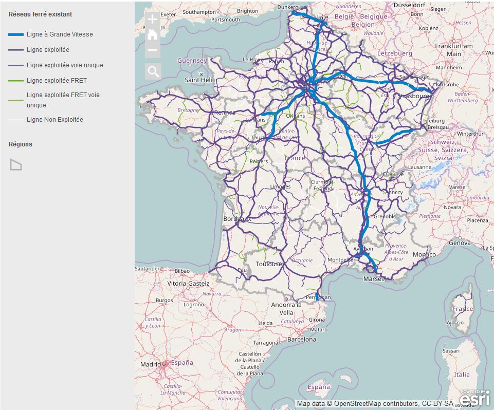 Today, French transportation faces the rapid pace of technological change and the obsolescence of many vehicles. It must also try to limit the capital’s overwhelming dominance. Since the early 1960s, several ambitious projects have helped modernize the road network by building new highways. While these still largely radiate from Paris, engineers have nevertheless made immense efforts to try to bypass the capital as much as possible. Below is the map of France showing the rail network.