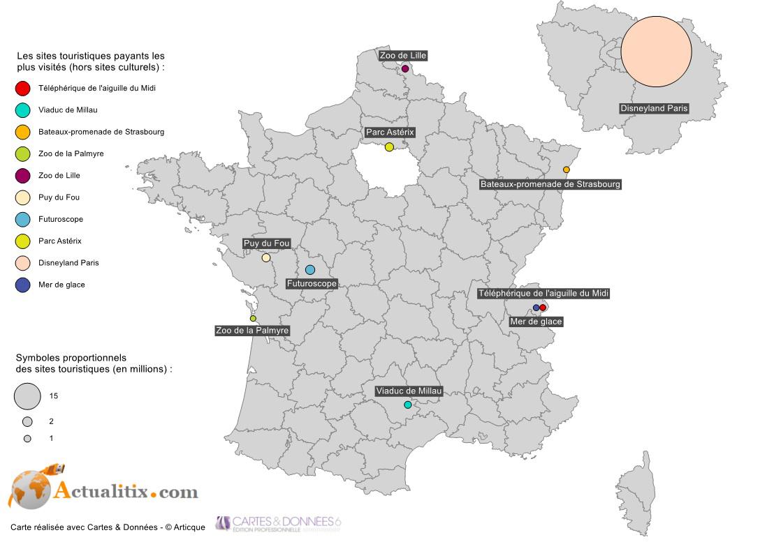 Tourism is a particularly prosperous economic sector. France is indeed famous worldwide for the variety of its landscapes and its contrasted climate. Its cultural, artistic and architectural heritage is among the richest on the planet, and the reputation of its gastronomy and wines needs no introduction. It therefore attracts many tourists from Asia, Latin America, the Middle East, North America and Europe. Below is the map of France showing the main tourist sites; you can consult the article for more information.