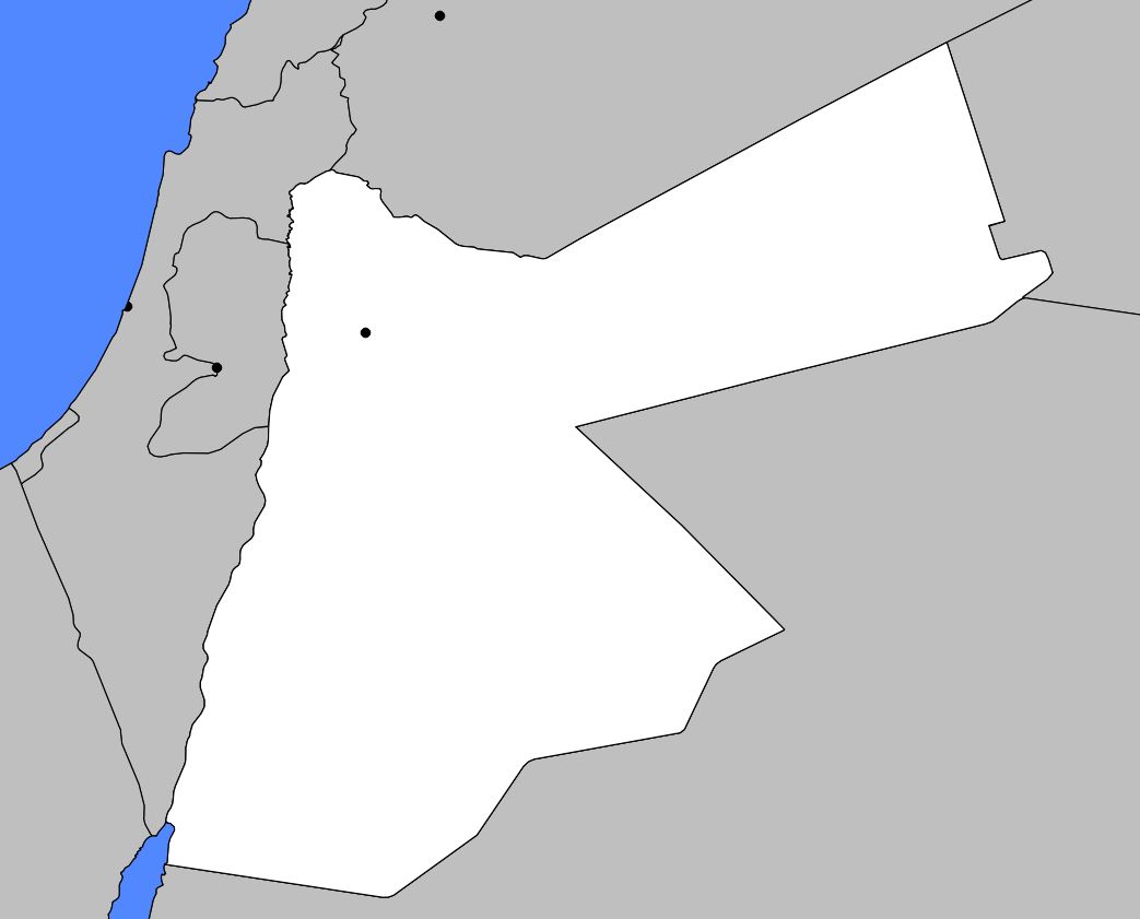 This is due to its strategic location at the center of a region considered by Christians, Jews, and Muslims as the Holy Land. As you can see on the map of Jordan, the country is bordered by Syria to the north, Iraq to the east, Saudi Arabia to the south and southeast, and Israel to the west.