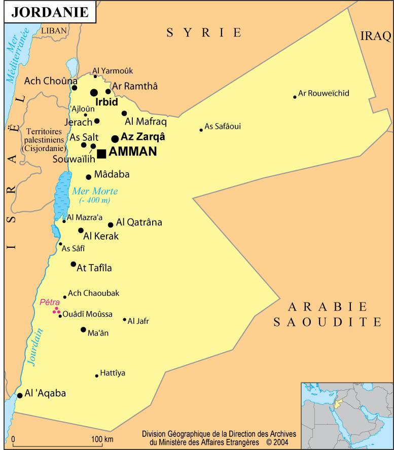 As you can see on the map of Jordan, the western part of the country, separated from the sea by Israel, enjoys a Mediterranean climate, while the east is desert in character. In the south, the influence of dry winds blowing from the Sahara can be felt, while the northwest, crossed by the Jordan River which flows into the Dead Sea to the south, is the country’s main agricultural region.